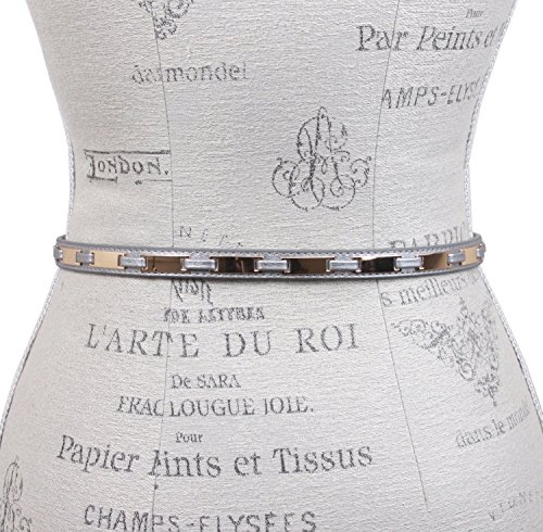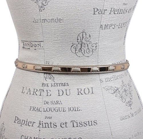 -. Title : Women's 1/2" Gold Plated Plaques Interlaced Metallic Skinny Belt
