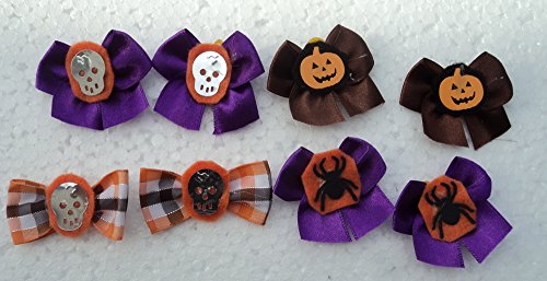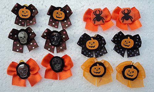 -. Binding : Misc. -. Brand : JJ Contour -. Color : Orange, Black and Purple -. EAN : 0045635443365 -. Feature : Aproximately 1.5 to 2 inches width of the bows / A total of 30 dog bows per pack / Two type of bows: Regular two-tail bows and Butterfly Bows / All bows have a center decoration of either a Ghost, a Pumpkin, or a Pom. / These bows are perfect ones for Halloween!!! -. Label : PET Expressions GA -. Manufacturer : PET Expressions GA -. NumberOfItems : 30 -. PackageQuantity : 30 -. ProductGroup : Pet Products -. ProductTypeName : PET_SUPPLIES -. Publisher : PET Expressions GA -. Size : 1.5 to 2 inches -. Studio : PET Expressions GA -. Title : 30 Halloween Dog Bows Collection with Ghosts and Pumpkin Face -. UPC : 045635443365