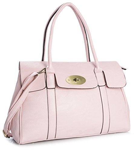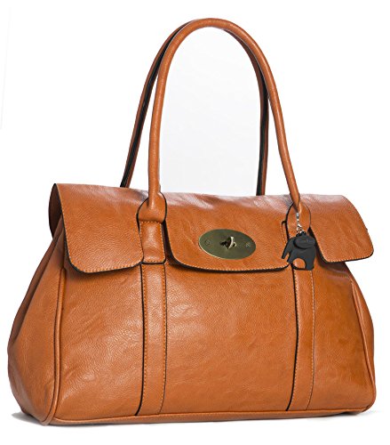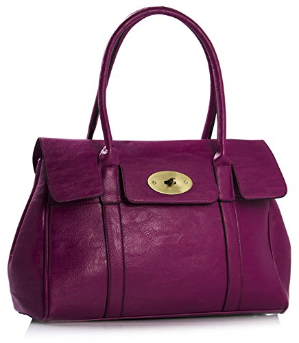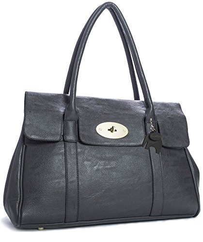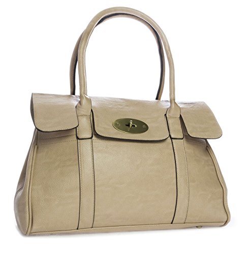 | Big Handbag Shop Womens Faux Leather Designer Boutique Turnlock Shoulder Bag |