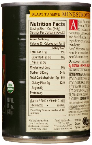 Amy's Organic Soups, Low Fat Minestrone, 14.1 oz