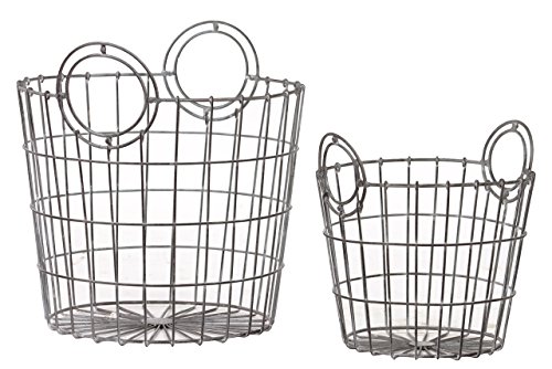 Benzara Charming French Market Bag Replica Metallic Wire Mesh Basket, Set of 2