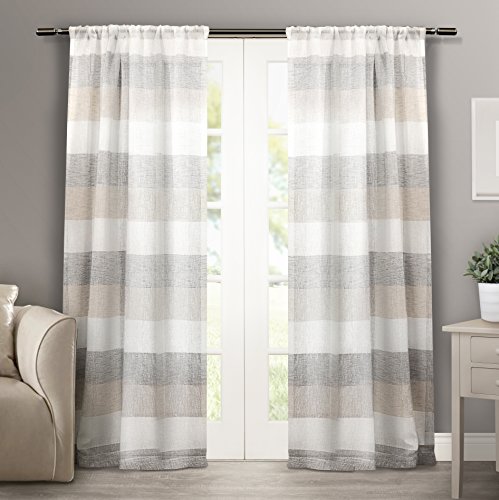 The Bern linen look rod pocket panels are light and airy, providing a smooth and rich look to any room. The neutral color coordinated wide horizontal stripes will add a simple, classic look and feel to any room in your home, apartment, office, business and more. These panels allow just enough outdoor light to filter through, while keeping heavy sun glares out. The Bern drapery is constructed with a Sewn in rod pocket, fitting the curtain rod of your choice. Impress your friends, family and guests with these window curtain panels on any window.Feature