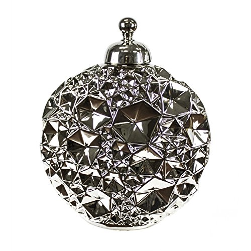 Benzara Ceramic Round Decorative Covered Jar, Silver