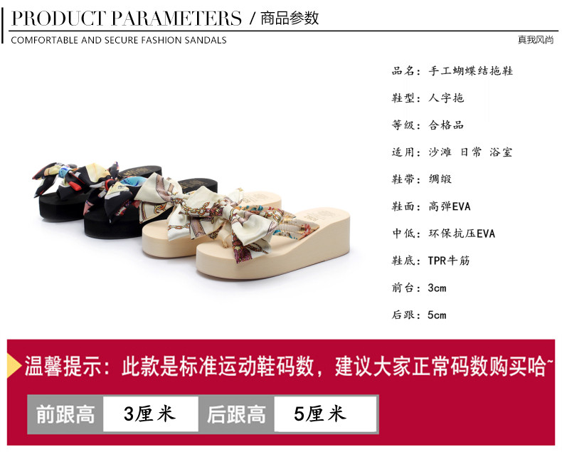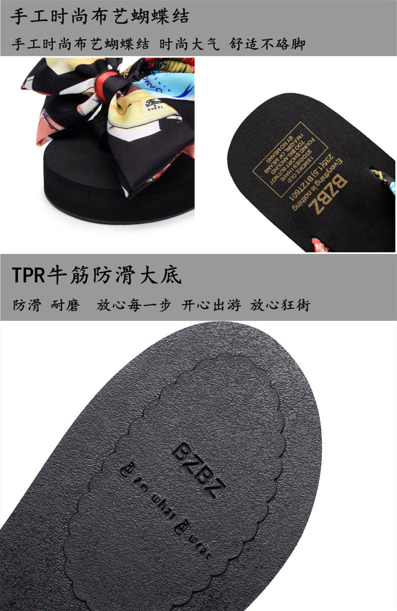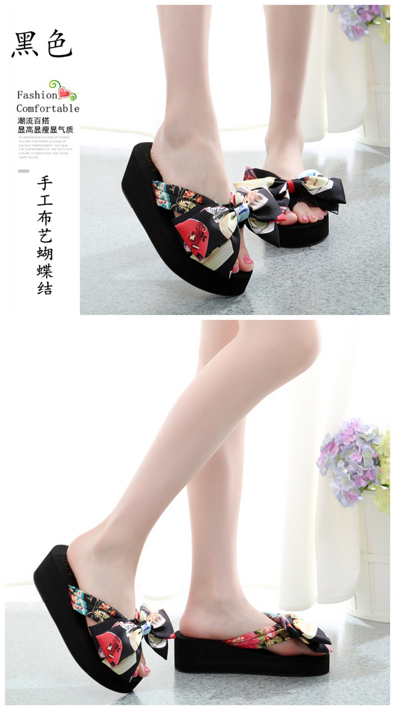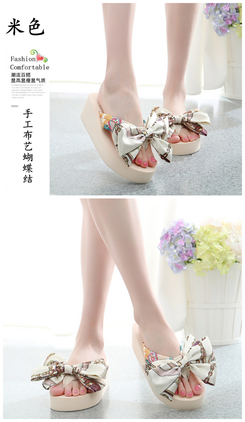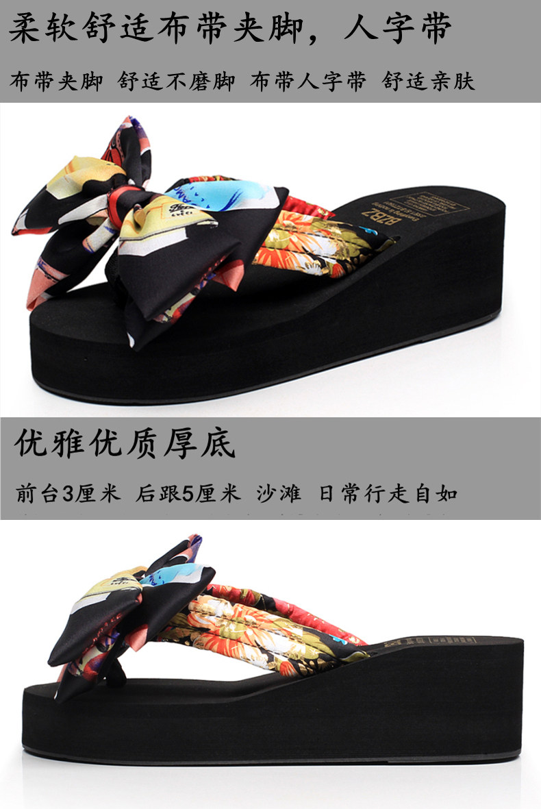 坡跟夹脚拖鞋女夏时尚韩版蝴蝶结人字拖防滑沙滩鞋外穿厚底凉拖鞋