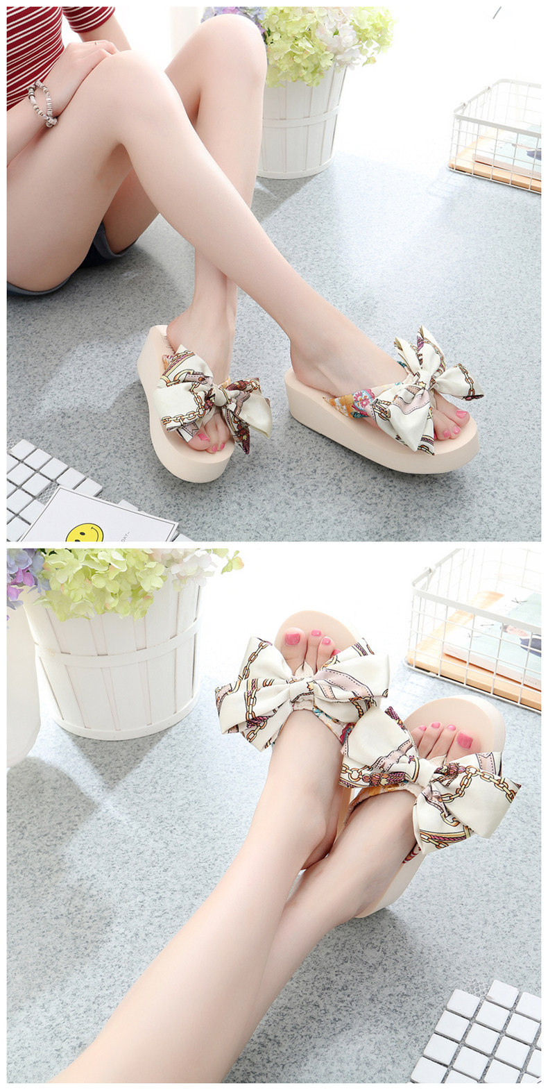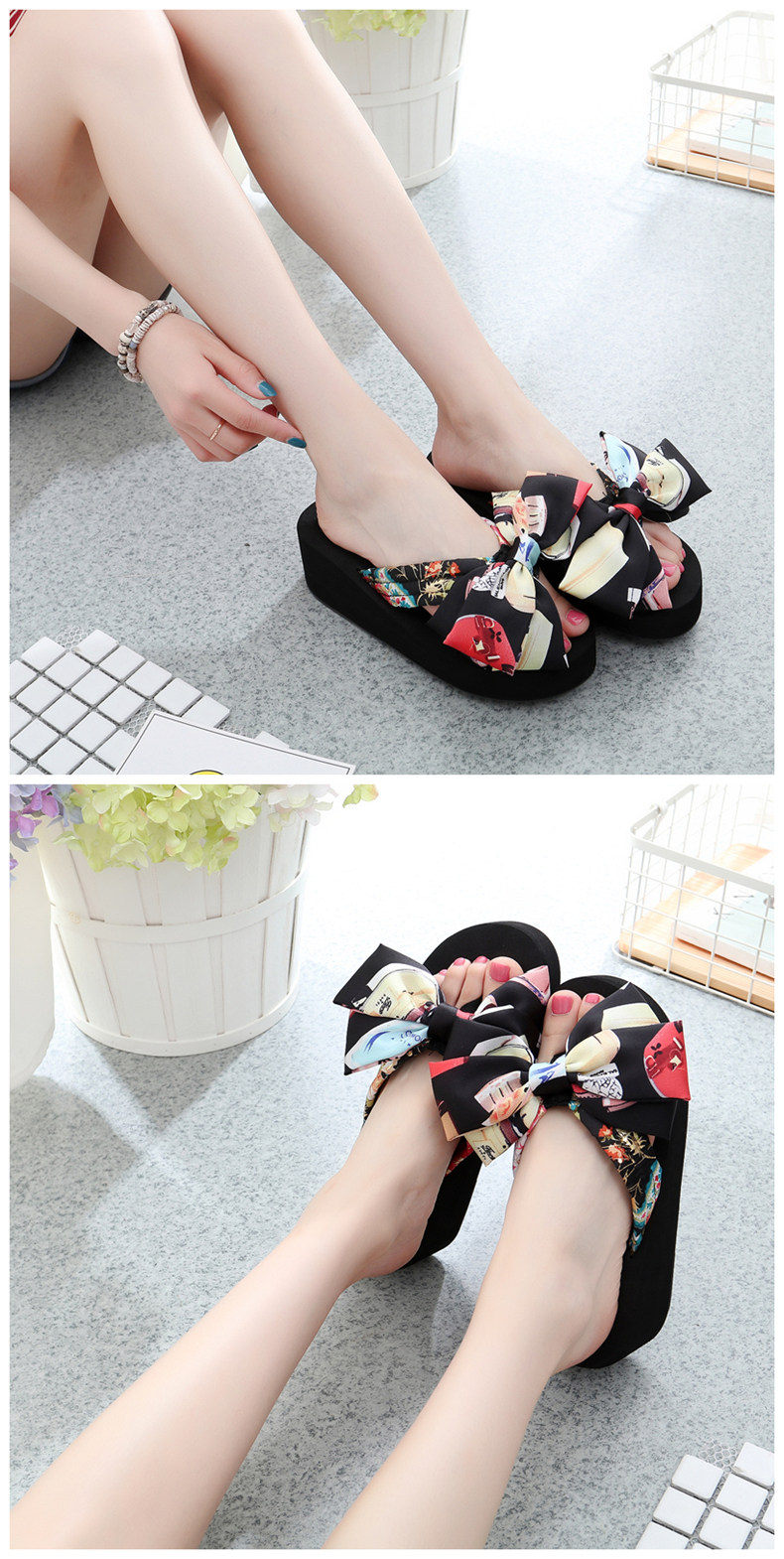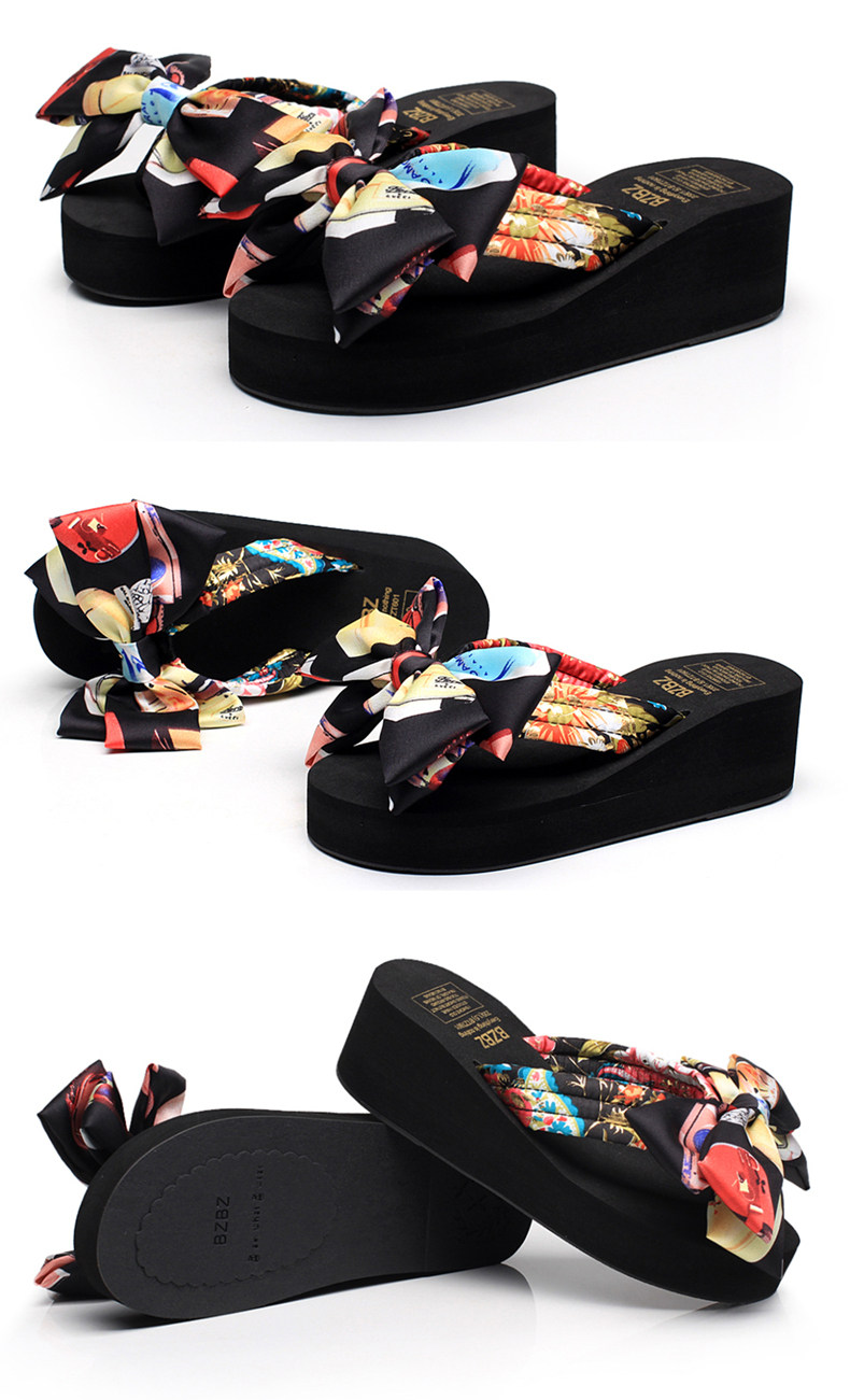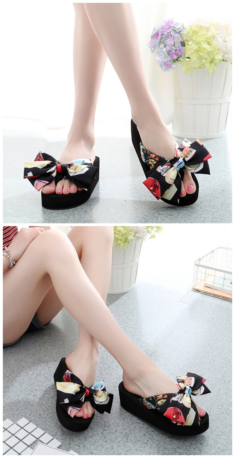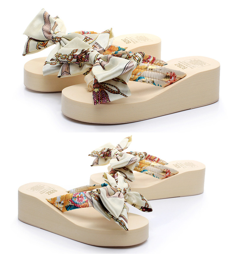 坡跟夹脚拖鞋女夏时尚韩版蝴蝶结人字拖防滑沙滩鞋外穿厚底凉拖鞋