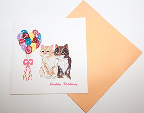 This Happy Birthday card has been handcrafted in Vietnam with beautifully intricate cat design that is three dimensional which makes it an enjoyable piece of art that is both distinctive as well as attractive that you can send to that special someone.