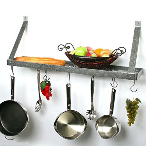 The Gourmet Bookshelf Wall Mount Pot Rack with Grid