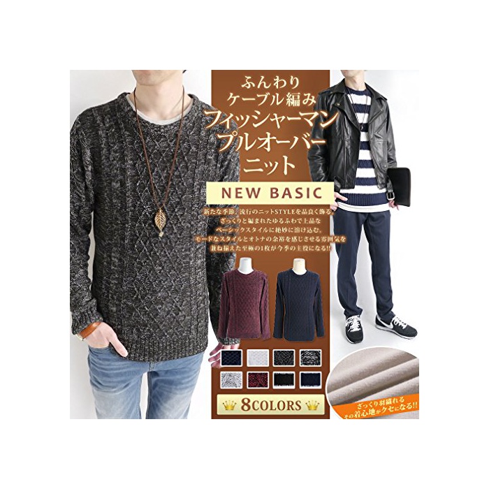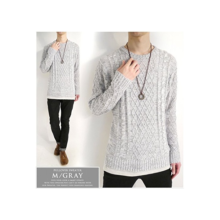 원본상품명: (モノマト) MONO-MART フィッシャマン ケブル編み ニット セタ ゆる Uネック 長袖 着心地 L/S MODE メンズ グレ Mサイズ