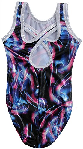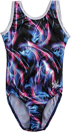 Studio : Snowflake Designs Publisher : Snowflake Designs Binding : Misc. Product Description This Galactic leotard is out of this world! The leotard is made from a printed mystique nylon lycra. It has a black base with swirls and stars on it. The neck and arms are trimmed in silver mystique. The BACK! Check out the back of the leotard with its cool criss cross design. Your gymnast will go into orbit over this leotard and it will become her favorite. Get it for her now! Matching hair scrunchie included!! *** Gymnastics leotards run quite smaller than regular "street" clothing. The sizes are based on the average petite gymnast. It is always best to get the child's girth measurement. To take the child's girth measurement, start at the top of the shoulder where the strap would lay, go down the front, through the legs, up the back to that same shoulder. So, it is a complete measurement of the torso. Children who are tall or have longer torsos may be the next size up. Please see our size chart to determine the correct size. 0