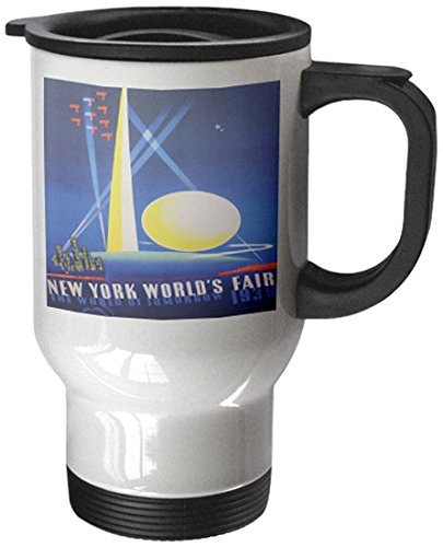 3dRose tm_163748_1 Image of 1939 New York Worlds Fair Poster Stainless Steel Travel Mug, 14-Ounce, White