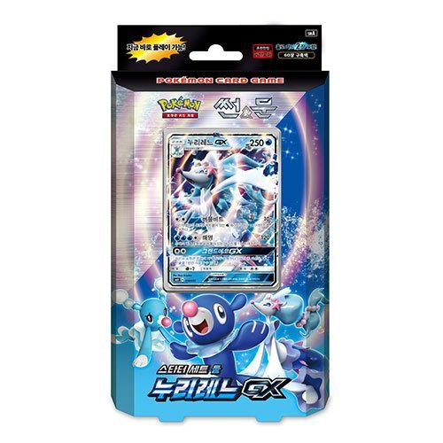 -. Binding : Toy -. Brand : pokemon card -. EAN : 0729958502564 -. Feature : Genuine Korean Version (100% Original Items) Pokemon Cards / The date of issue : 2017.01.12 / 60 Cards (2 holo cards) / Playmat for 2 Players / / Damage Counters & Markers / Pokemon Coin / GXMarkers / Play Guide Book -. IsAdultProduct : 0 -. Label : Pokémon Korea -. Manufacturer : Pokémon Korea -. MPN : 43220-110217 -. PartNumber : 43220-110217 -. ProductGroup : Toy -. ProductTypeName : HOME -. Publisher : Pokémon Korea -. Studio : Pokémon Korea -. Title : Pokemon Card Sun & Moon P.R.Imarina-GX Starter Set Water Korean Ver. -. UPC : 729958502564