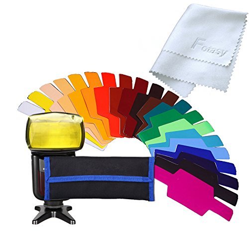 Fotasy Universal Speedlight Color Filter Kit (20pcs) for Canon Nikon Sony Pentax Olympus Metz Flashes, with Premier Lens Cleaning Cloth.