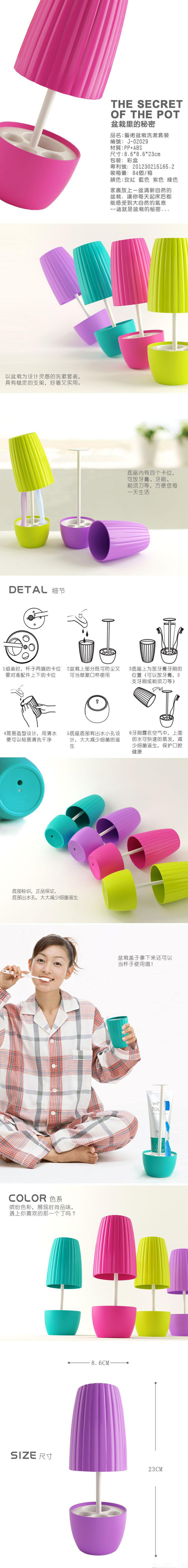 塑料材质做工精致,底部三个小孔可以放牙刷,大孔可放牙变膏,灯罩可以当漱口杯使用.