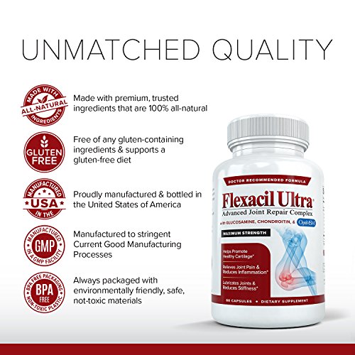 SAFE, EFFECTIVE SOLUTION TO ALLEVIATE JOINT SORENESS: Flexacil Ultra is manufactured in the USA at an FDA Certified, cGMP accredited facility. Our premium, trusted formula is made with scientifically researched ingredients that are free of preservatives, allergens and gluten. This exclusive formula is HPLC and InfraRed tested to ensure that what is on the label is truly in your joint supplement.