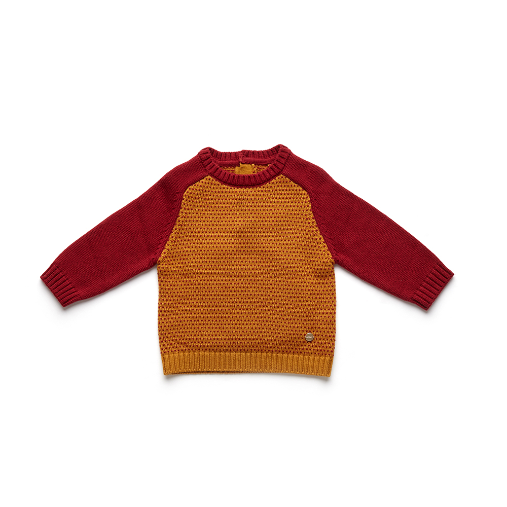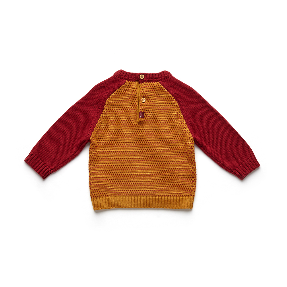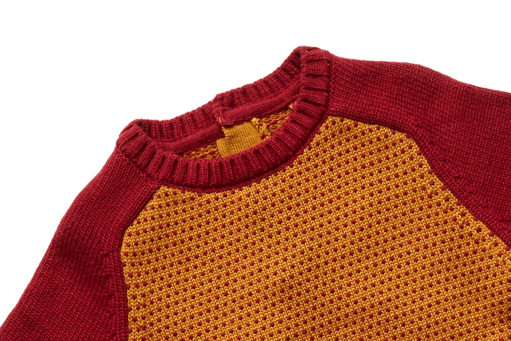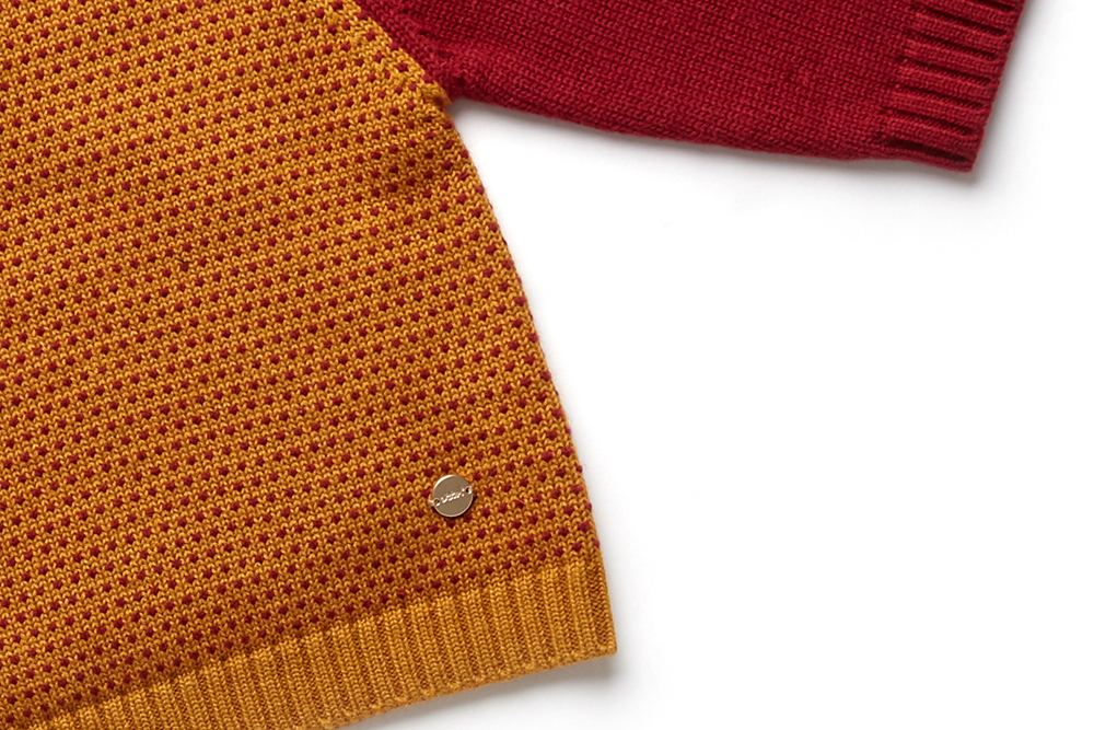 유니크한 자카드 니트 스웨터 티셔츠로 독특한 어깨 패턴과 컬러감이 포인트입니다