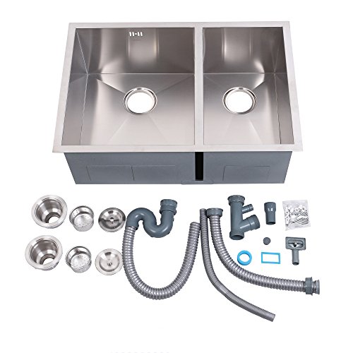 Stillori Kitchen Sink 29''x20''x10'' Double Bowl 70/30, Undermount, Zero-Radius 18 Gauge, 10'' Deep, Handmade, 304 Stainless Steel, , S7451H