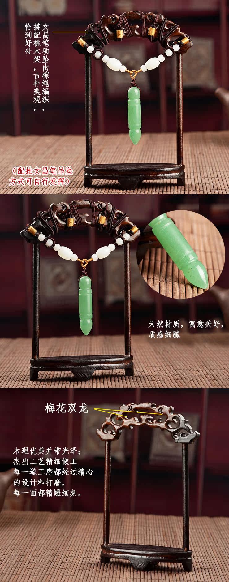 风水阁状元文昌笔玉吊坠促学业事业旺文益智饰品送桃木梅花龙架子