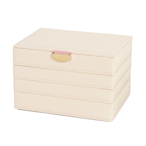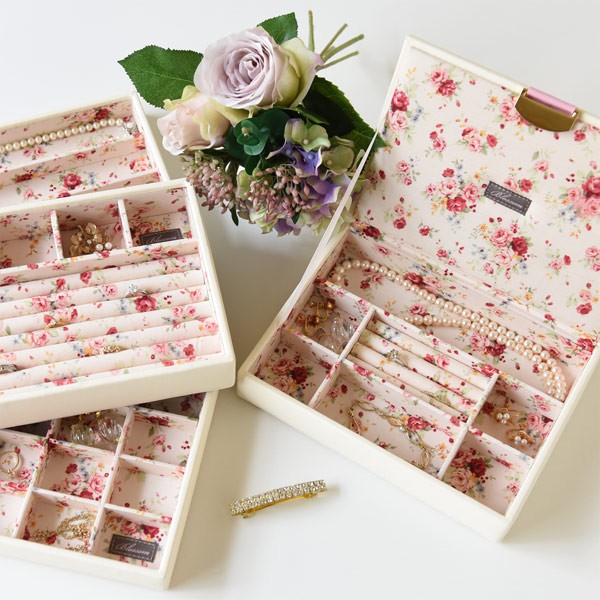 ピンク色とローズの組み合わせが愛らしい Blossom(ブロッサム)シリーズ。甘くなりすぎない絶妙な色とエレガントさも感じさせる可憐なローズ、さらにシンプルなシルエットが年齢を問わず多くの女性の心をくすぐります。ジュエルケースとトレイはスタッキング可能なので、自由にカスタマイズが楽しめます。こちらのシリーズには底に凸部があり、積み重ねてご利用いただけます。お手持ちのジュエルケースに合わせて、自分だけのジュエルケースをカスタマイズできます。プレゼントやギフトにもおすすめ。