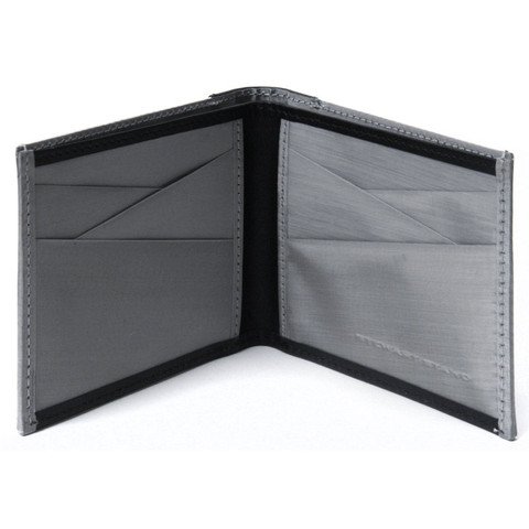 -. Feature : Modern day industrial material paired with premium Italian leather. / RFID Blocking Protection from Credit Card ID Theft / 6 credit card slots, 2 misc. pockets, and 1 bill compartment