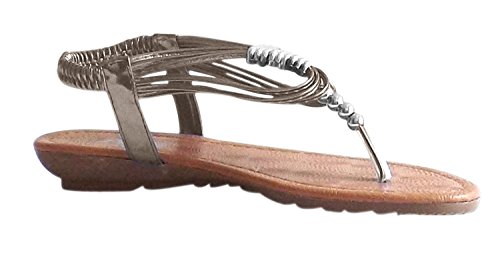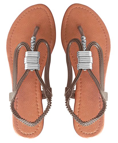 Binding : Apparel Product Description New by Peach Couture (a registered trademark). A summer must-have! Summer just got a little bit hotter and a whole lot easier. Women's T-Strap Beaded Strappy Sandal. Hey, we're into it - the way you rock their metallic vegan faux-leather straps and silver accents makes us wonder if these festive stunners were made for you. Peach Couture sandals exemplify chic comfort, the insole of this sandal features memory foam for added comfort. With unique materials and fine styling, each pair of Peach Couture sandals is an affordable luxury that intelligently combines a youthful attitude with a down to earth sensibility. The rubber bottom gives excellent traction in any weather. A classic shoe that will stand the test of time, at an exceptional price. Mix and match any outfit or accessory with these shoes; available in 4 beautiful colors! 0