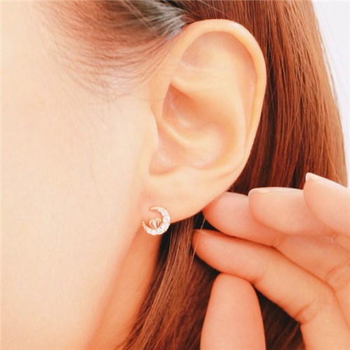 달 모티브에 살짝 얹혀진 하트가 귀여운 실버 귀걸이