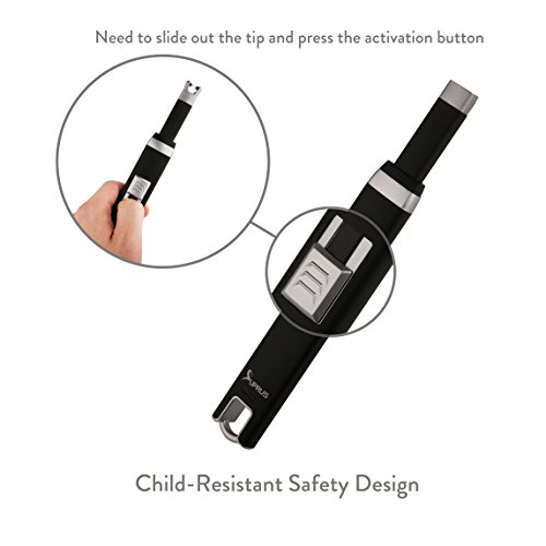 Let Suprus arc lighter bright your life! ★Save Time Money-NO FLAME. NO FUEL. NO GAS. NO HARM.You don't need to buy lighter refill again and again. ★Easier, Faster Cleaner than using an old fashion fuel-based lighter. Long Neck Design make it much easier to use in any direction.The arc lighter is not only windproof, but also economical and environmentally friendly. ★Arc lighter also can be used as Flameless Candle Lighter, Camping Lighter, BBQ Lighter,Kitchen Lighter, Torch Lighter, Fire Starter, Fireplace Pilot Lighter. Outdoor Utility Lighter Suit for birthday candle, BBQ grills, camping, and many other uses. ★It is a great gift for Mothers Day,Fathers Day, Independence Day, Grandparents Day, Halloween,Thanksgiving Day, Christmas Day, New Years Day.? Package Include: 1 * USB Rechargeable Windproof Arc Lighter 1 * Micro USB cable 1 * Gift Box ★PLEASE READ MANUAL(ONTHE BOTTOM) BEFORE USING. 0 |