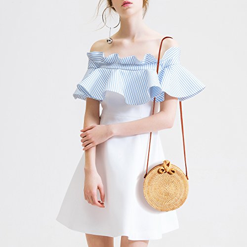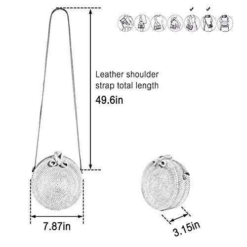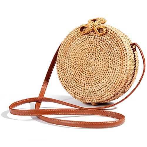 Round Handwoven Rattan Bag Small Straw Bag Beach Shoulder Bag for Women