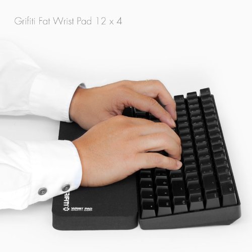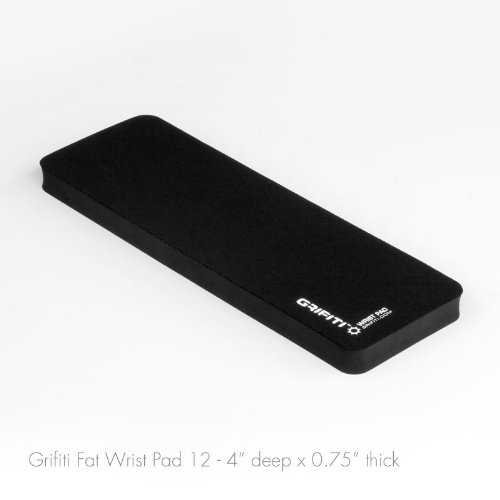 Grifiti Fat Wrist Pad 12 is a 4 x 12 Inch Wrist Rest for Small Mechanical Keyboards, MacBooks, Laptops, and Notebooks in Black Neoprene and Black Nylon