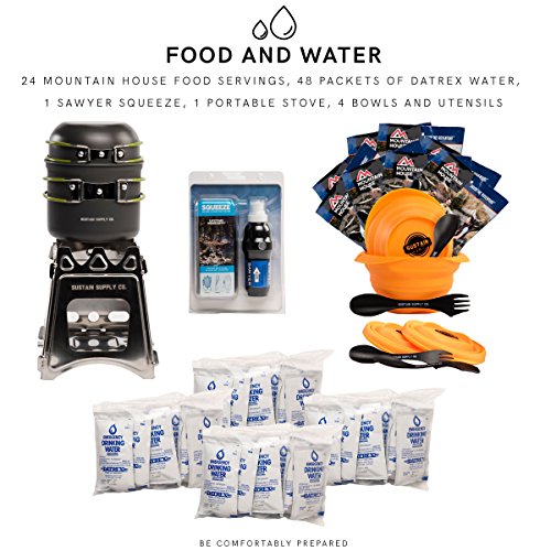 Does your family have an emergency safety plan? Of course you’ve taught your children where to shelter in case of a tornado, and you have a designated family meeting space in a safe place outside your home in case of fire. But have you thought about what to do in the hours and days after a disaster occurs? The first 72 hours after an emergency are often the most critical. Municipal officials and disaster relief workers are doing their best, but it’s impossible for them to reach everyone affected by the crisis immediately. Downed trees and inaccessible roadways can make power restoration time-consuming, and local aid resources may be inoperable or overwhelmed with the amount of people seeking assistance. In the event of a natural disaster, you want to be focusing on your family’s safety, not worrying about whether you have enough supplies. The Sustain Supply Co. Premium Emergency Go Bag for 4 people contains essentials for hydration, nutrition, hygiene and more, all in one durable, water-resistant backpack. If you purchase your emergency preparedness kit now, you can rest easy knowing your family’s needs will be met under extreme conditions. After the initial danger has passed, your family could be faced with long-term power outages, food and water shortages and other challenges. With our premium kit, you’ll be ready. In this 4-person kit you’ll find 6 liters of water for drinking and cooking, as well as bath wipes, which allow you to avoid wasting drinking water for washing. A Sawyer Squeeze water filtration system lets you obtain additional water from nearby sources, such as streams or lakes, rendering it safe for consumption. The portable stove makes heating food and water possible during emergency situations without the need for an external heat source. A hot meal can go a long way toward providing comfort and a sense of normalcy for your family in times of severe stress, and 24 Mountain House Food Servings of rice and chicken, macaroni and cheese, chicken noodle casserole (enough to sustain 4 adults for 72 hours), as well as 4 bowls and utensils, are included for use after you’ve exhausted the existing groceries in your home. You’ll also find two options for starting fires as needed: a Ferrocerium rod that requires no fuel and 4 InstaFire tinder which can be used as tinder when no other sources are available. The kit even contains 3 different types of light sources. Two LED lanterns offers ambient light for a room at night; 8 SnapLights give you general illumination with no batteries or open flames and work especially well if you need to signal for help; and two battery-powered flashlights provide a powerful directional light source for specific nighttime needs but should be used sparingly to prolong battery life. Basic first aid supplies are included in this disaster preparedness kit as well as 4 emergency blankets that reflect body heat to optimize warmth and dryness. The kit itself is contained within a grab-and-go backpack in case of a need for sudden evacuation. With its multiple interior pockets, you can organize the backpack in the best way for your family, and even customize it by including copies of important documents, prescription medications (be sure to keep these up-to-date), batteries or even small comforting toys for your kids. Every item included in our premium kit is of the highest quality available. After a devastating disaster, your family is already sacrificing so much ? don’t settle for subpar emergency supplies. With Sustain Supply Co., you can be sure you’re equipped with the most durable and effective tools and the best freeze-dried food and hydration options out there. We’re committed to keeping your family safe and healthy in the aftermath of a tornado, hurricane, earthquake or other major disastrous event. | ? 0 |