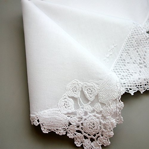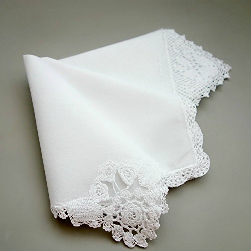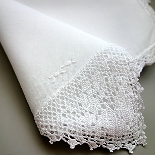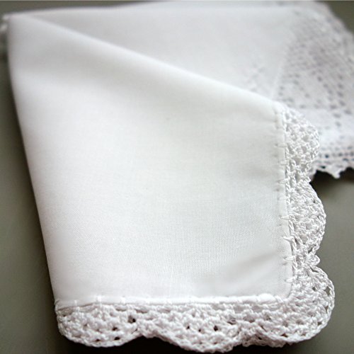 White Crochet Lace Wedding Ladies Cotton Handkerchiefs Hankie Hanky- Set of 3