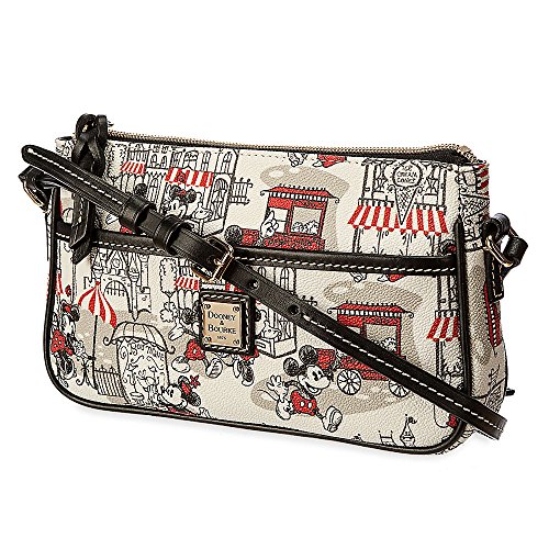 Everyday adventures are more fun in the company of Mickey and Minnie. The sweethearts know all the best spots as shown on this stylish pouchette by Dooney & Bourke, which pictures the pair enjoying a romantic day out on the town.