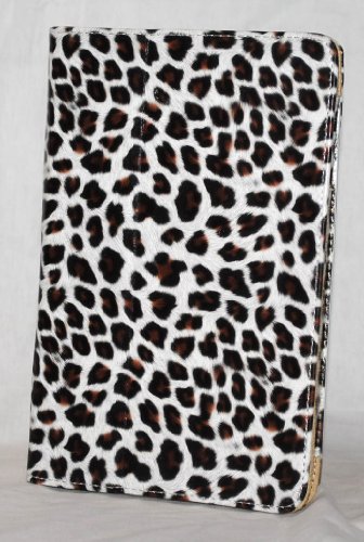 -. Title : White with Brown Leopard Spots Design Amazon Kindle Fire Tablet Case with Built in Kick Stand Function