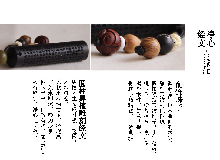 搭配:辟邪原生桃木雕刻的木珠,雕刻云纹的红檀珠子,