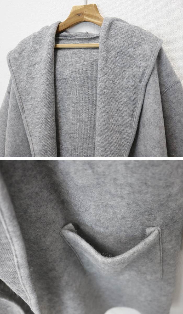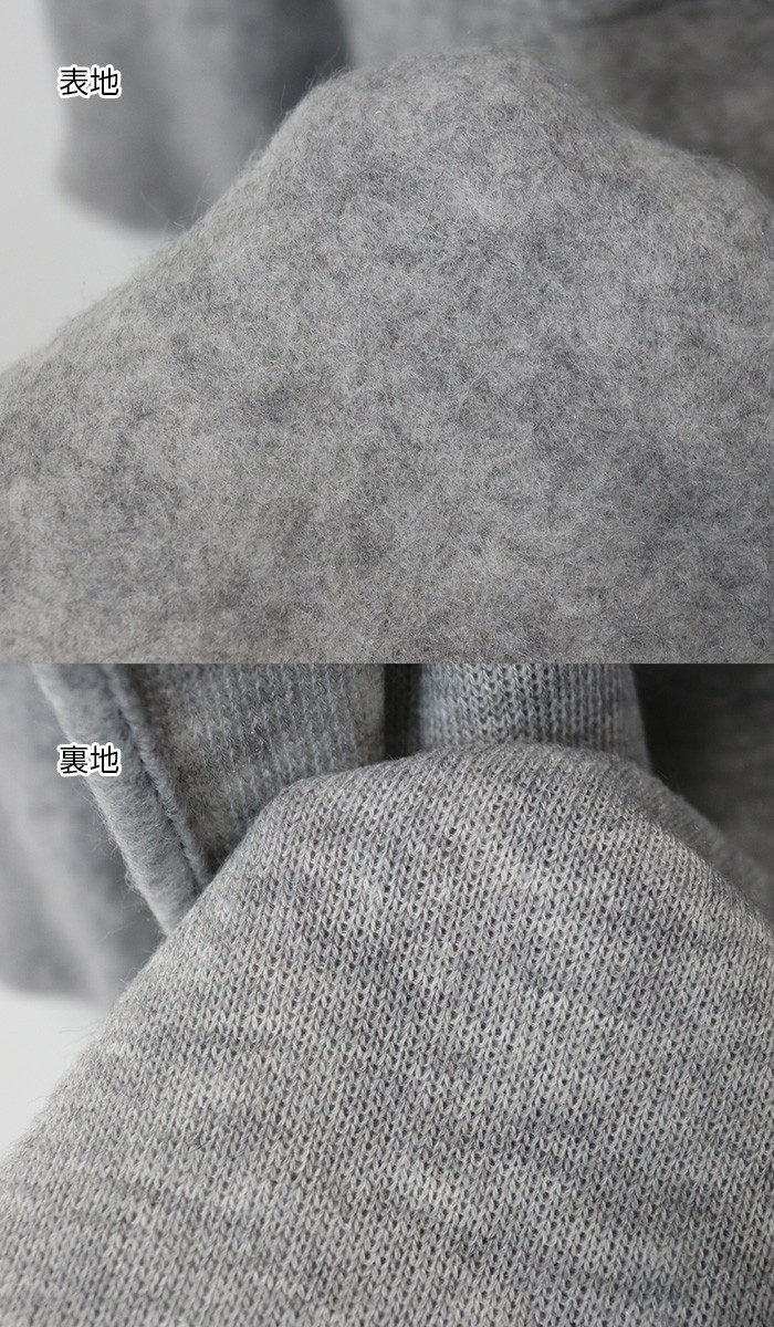 表地は起毛、裏地はニット編地になっておりフード部分や袖を折り返した際の生地感の違いが楽しめるアイテムです。