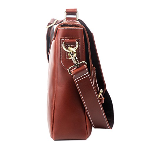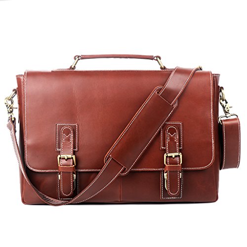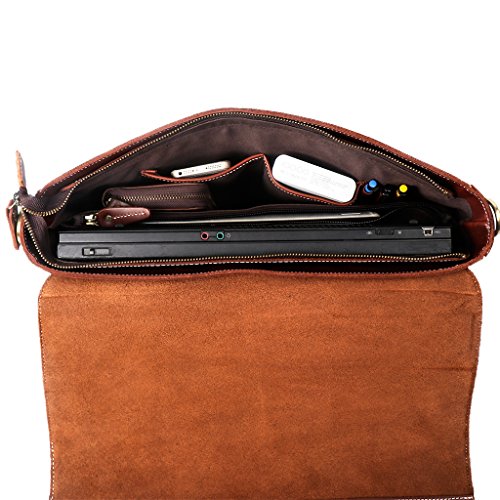 -. Brand : LeatherFocus -. Department : mens -. Feature : Features full grain vegetable-tanned cowhide leather and the finest in craftsmanship. / One large main compartment provides ample room for business essentials; Inside laptop/macbook/tablet/iPad sleeve fits up to 14'' screen and slide-in pockets for iPhone, cards, pens etc. / Removable, adjustable 56"/60" padded leather shoulder strap for shoulder or crossbody wear. / Organizer under front flap with easy-open sturdy push lock closure; fast access rear zipper pocket design brings you convenience. -. ProductGroup : Apparel -. ProductTypeName : LAGE -. Title : Leather Briefcase Messenger Bag Laptop Bag Business Portfolio Attache Case
