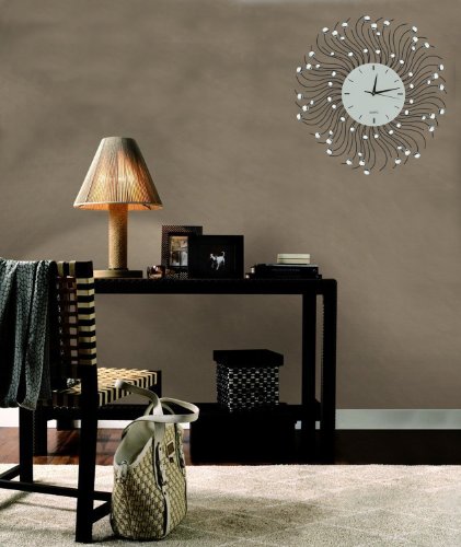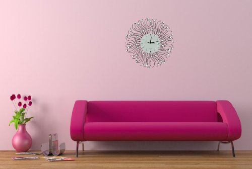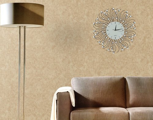- Feature : 23" Decorative metal wall clock. Sun shape / Dimensions: Diameter 23". Dial Size 8.50" / Quality quartz battery operated movement. / Wall clock frame made of metal with crystal accents and wall clock dial made of glass. Please beware of cheap plastic reproductions. / Requires one AA battery (not included).