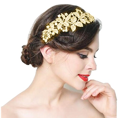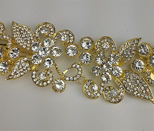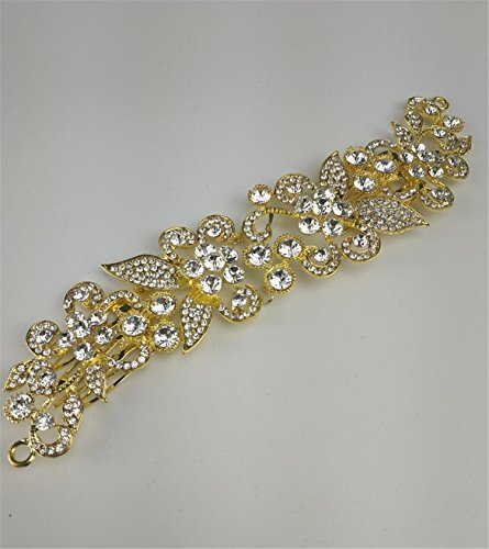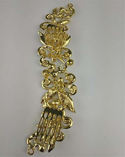 Wiipu Luxury Crystal Bridal Hair Comb Clip Flower Rhinestone Hair Combs(B1753)-Gold