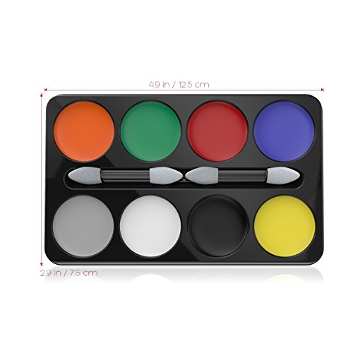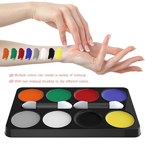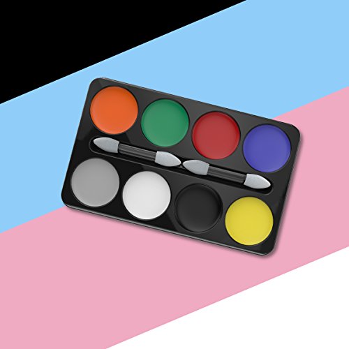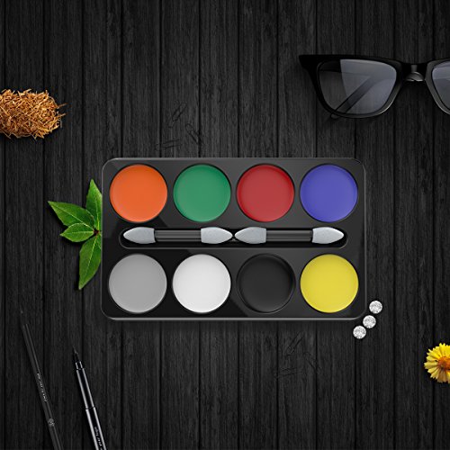 CREATE UNLIMITED STUNNING LOOKS. The kit contains an 8-color makeup palette made from safe material, anyone can apply this paint on the face or body and create unlimited looks. Simply apply it with water and use your brush or sponge and start shape your awesome appearance.