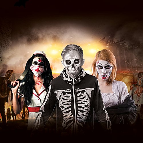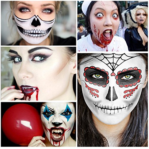 PERFECT FOR CRAZY PARTY NIGHT. To be a vampire, zombie, witch or any character you want with this makeup kit for crazy Halloween trick-or-treat party night or other costume party.