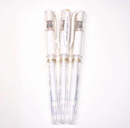 -. Title : 4 X Uni-Ball Signo Broad Point Gel Impact Pen White Ink, 3 pens per Pack (japan import) [Komainu-Dou Original Package]