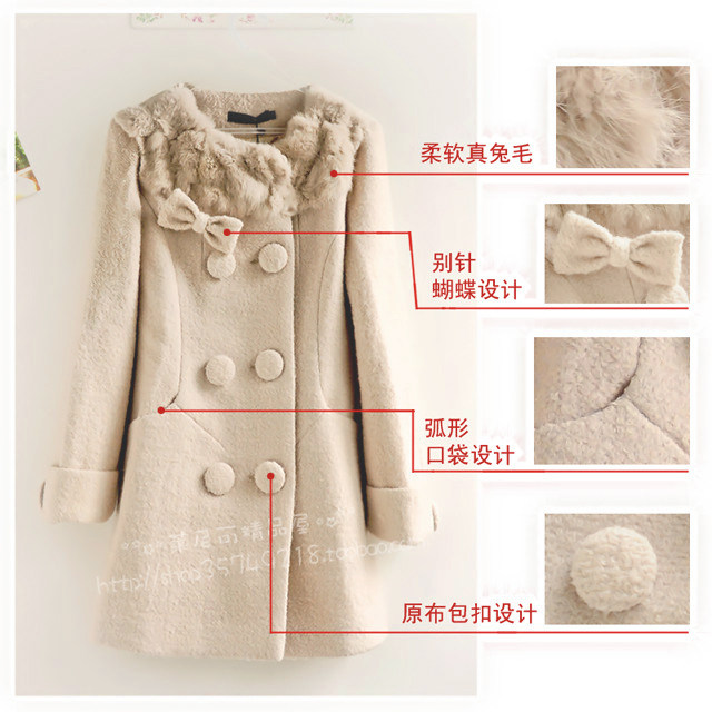 真兔毛,手感很柔软,摸着很舒服(兔毛领是固定的,不可以取下的)