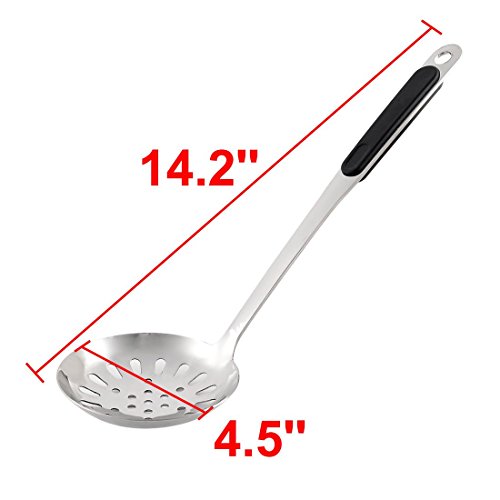 (DealMux)/Kitchen Dining/Cook's Tools Gadgets/DIRECT FROM USA/DealMux Plastic Handle Stainless Steel Kitchen Tableware Perforated Spoon Skimmer 36cm Length