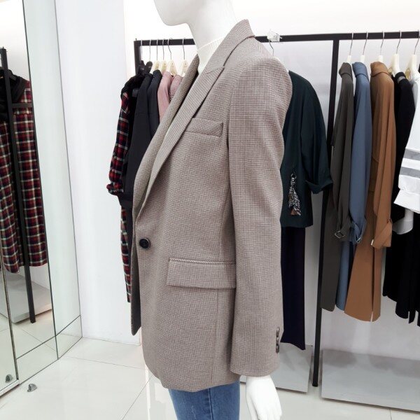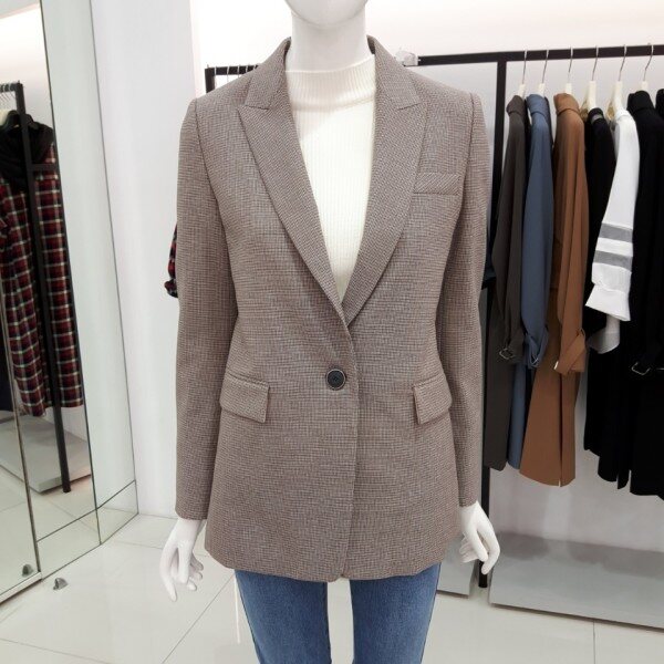 thyren, 베이직한 원버튼 체크자켓입니다