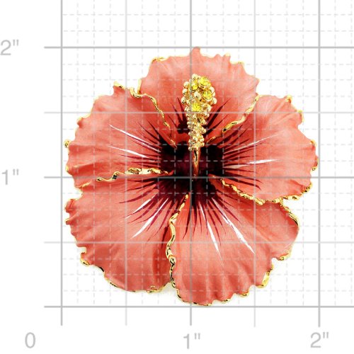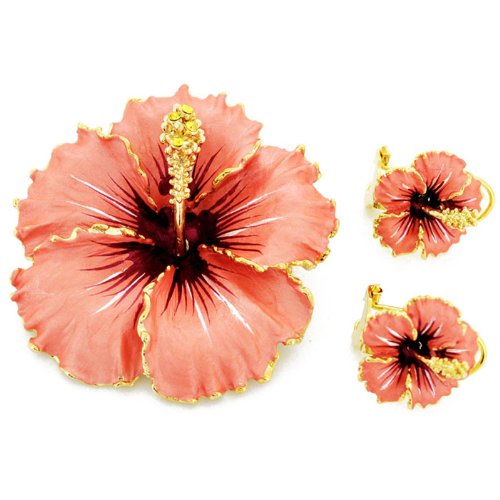 -. Title : Peach Hawaiian Hibiscus Swarovski Crystal Flower Pin Brooch And Earrings Gift Set