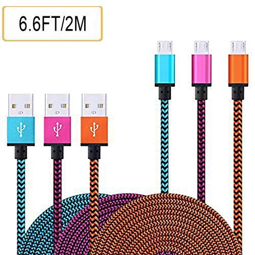 -. Feature : 2-in-1 function - usb 2.0 charging and sync data cable up to 480Mbps transfer speed provide fastest charging and data transferring speed. / Standard 6.6FT - The 6.6ft cable is convenient to use while in bed, a car, or office. No worry again for the short length of cables,make your life more convenient. / Extra Durability - The stainless steel connector heads slot in easily and steadily, and won't get loose or fall out of your devices as your normal micro cables. Nylon fabric braided jacket is smooth, flexible tangle free, which makes your life more convenient. / Perfect Compatibilit y- For use with all Kindle tablets and e-readers. Besides, it is ideal USB cable for smartphones, tablets and other devices with micro USB connectors like Samsung Galaxy, HTC, Motorola, Nexus, Nokia, LG, Huawei, Sony, Blackberry, Android smartphones and more. Designed to fit into all cases. / What You Get: 3-Pack 6.6ft Micro USB Cable ,18-month warranty and friendly customer service