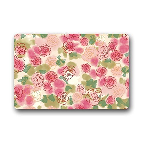 Watercolor Art Painting Pink Rose Flower Floral Pattern Floor Mat Rug