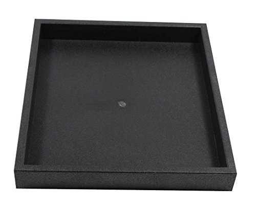 8 1/4 x 7 1/4 x 1 Black plastic sample tray. 9/10 inch deep. Stackable trays have plastic feet that allow stable secure stacking.