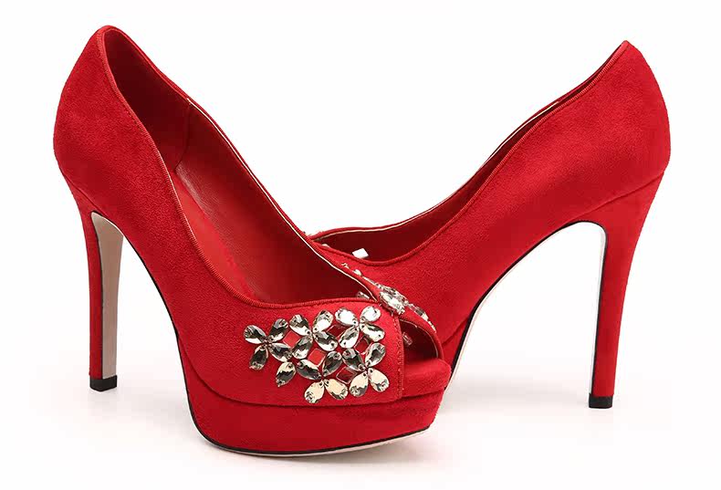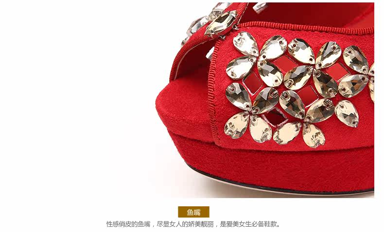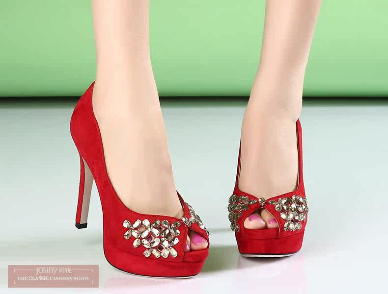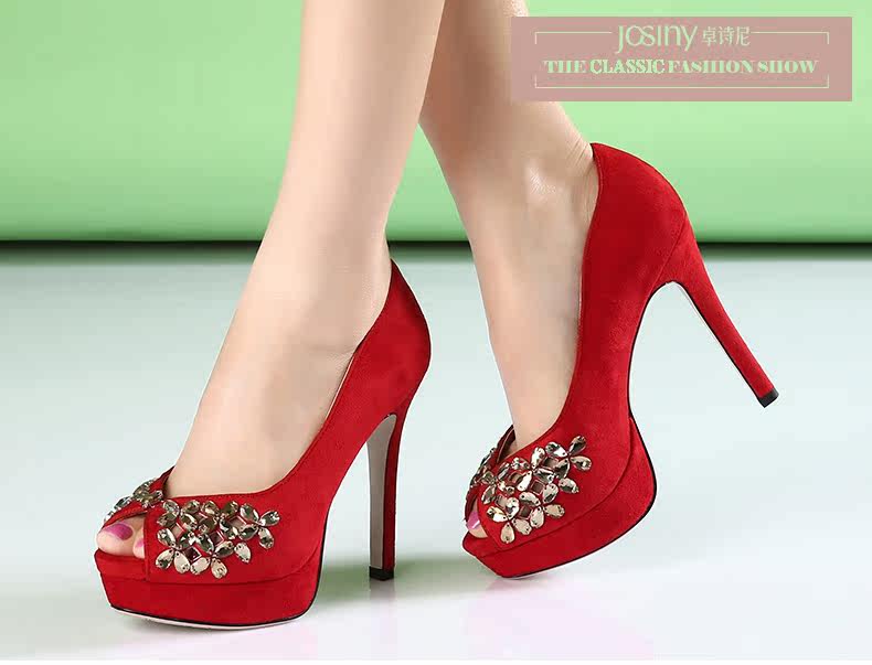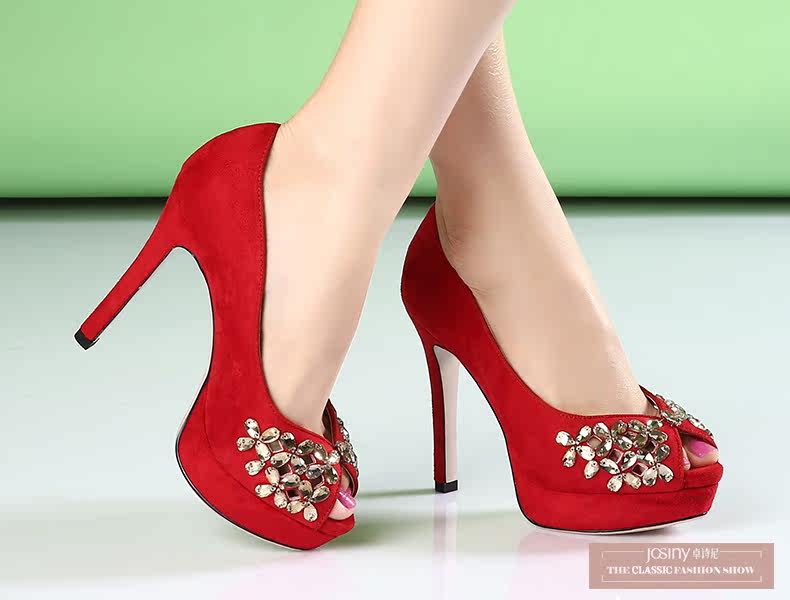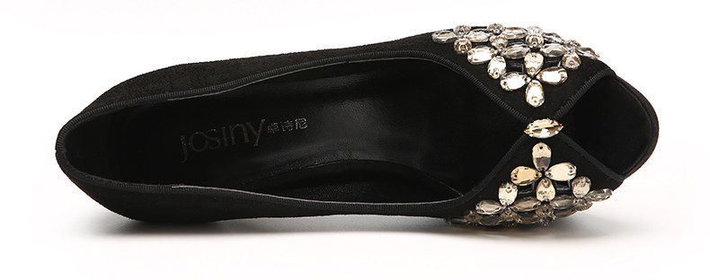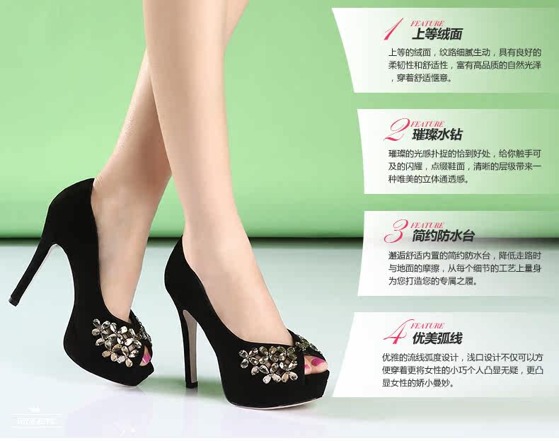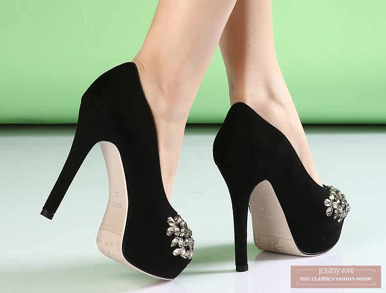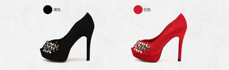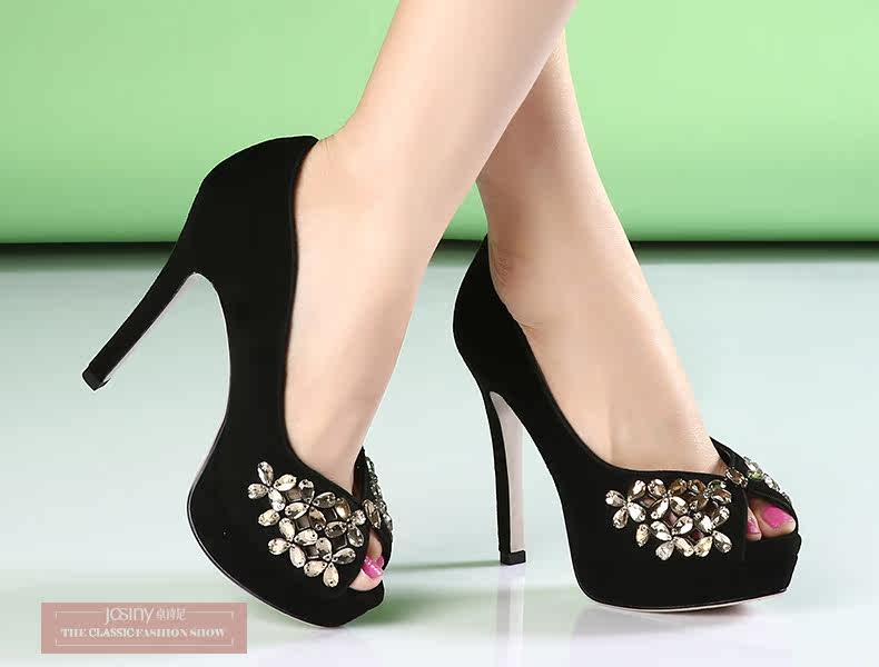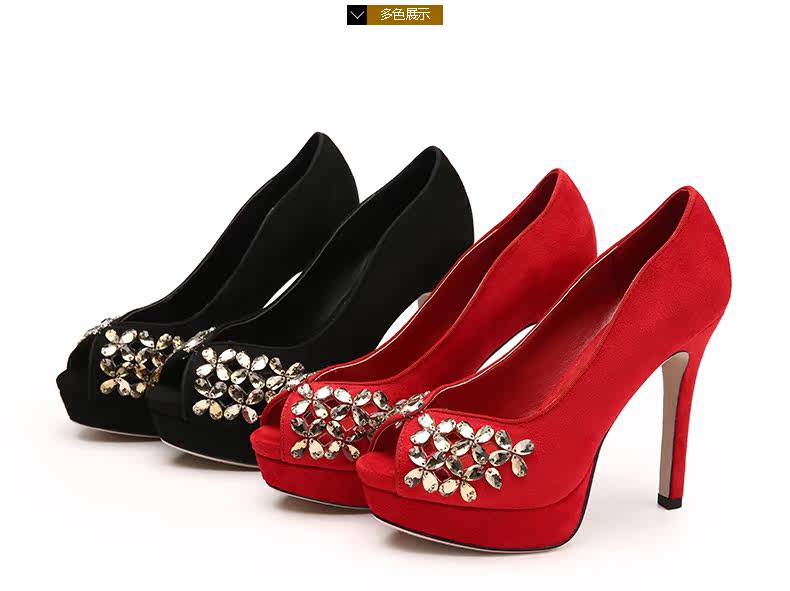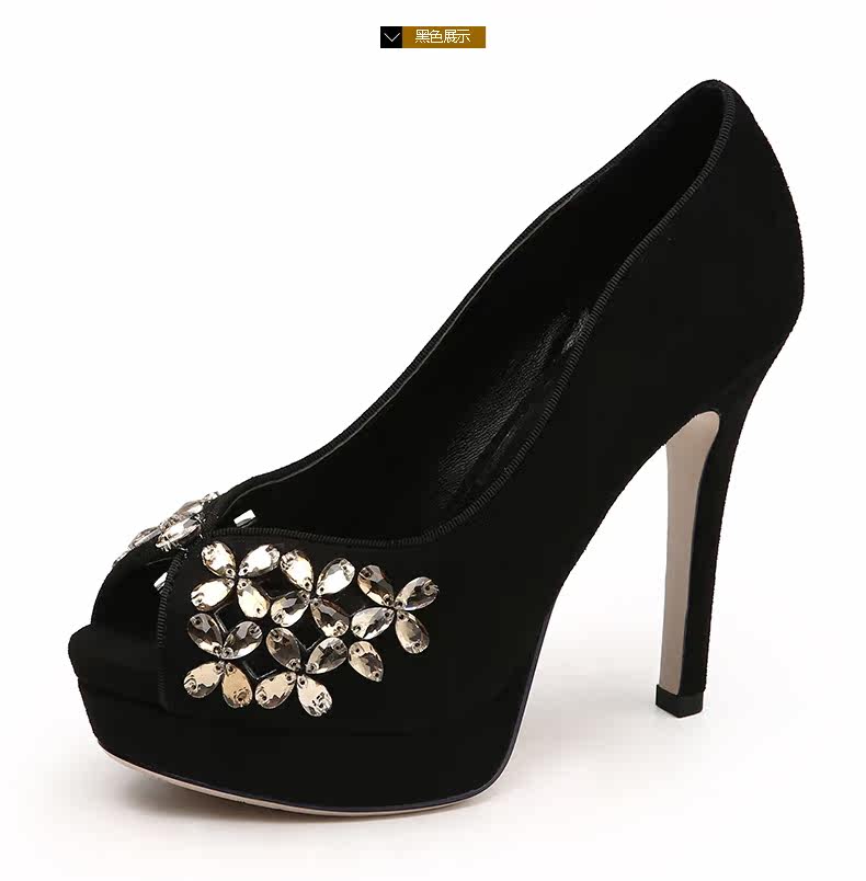 春季新款欧美浅口鱼嘴细高跟磨砂水钻单鞋