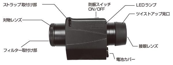 | 手ブレ補正機能付きで細かなブレを軽減をする単眼鏡。 |