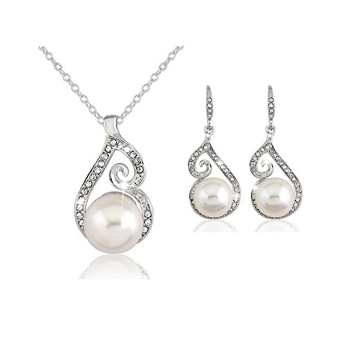 Bridal Party Jewelry Sets Pearl Necklace Set Chain Necklace Earrings silver Plated Jewelry Set For Women
